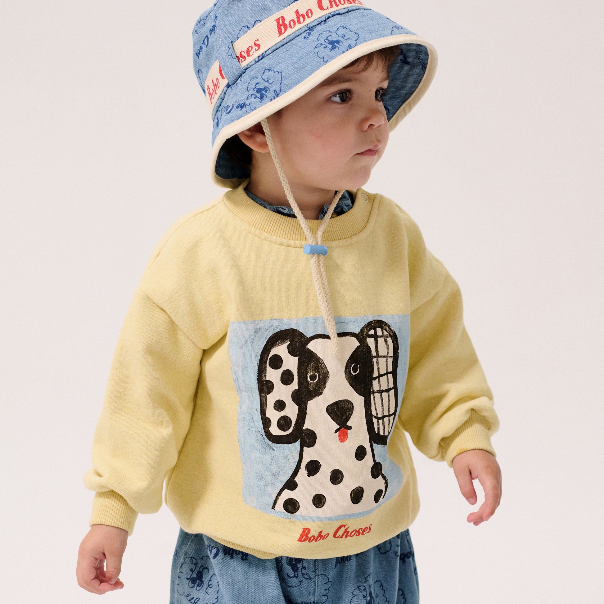 - Yellow cotton sweatshirt with silkscreened print