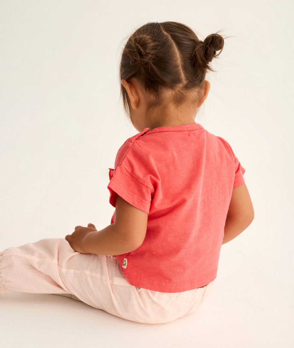 • Soft slub cotton ruffle pocket baby T-shirt