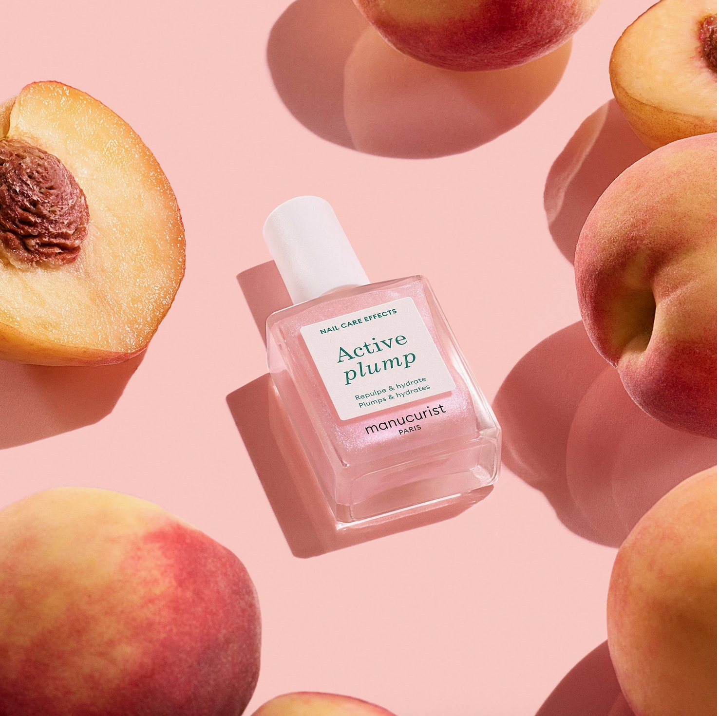 Manucurist Active Plump nail care bottle on a beige background